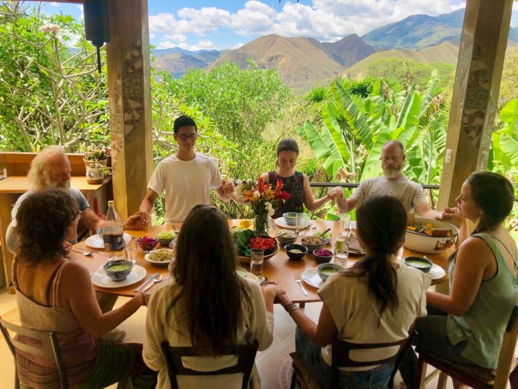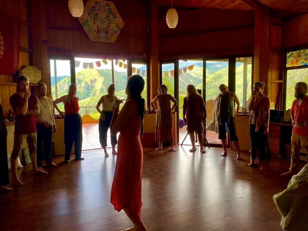 A devotional gathering welcoming both retreat participants and the local Vilcabamba community.